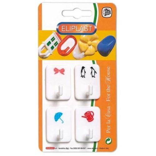 Eliplast Set ganci adesivi 4 pz plastica decorati Assortiti 74