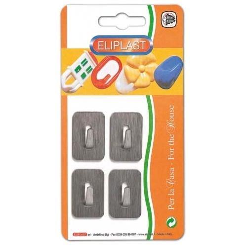 Eliplast Set ganci adesivi 4 pz acciaio inox medi Satinato 2244