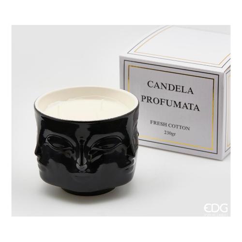 Edg Candela profumata Fresh Cotton (11x9cm) Vaso Facce Nero 612906 90