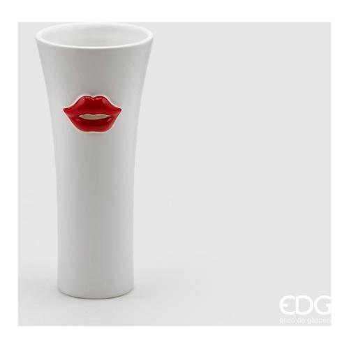 Edg Vaso ceramica (9x21cm) concavo KISS Bianco e Rosso 019325 43