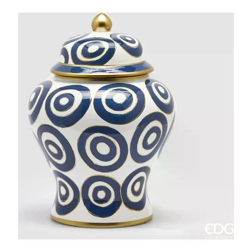 Edg Vaso ceramica (28x41cm) anfora con coperchio CERCHI Azzurro e Bianco 1100395 A18