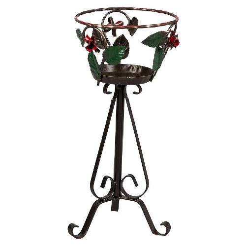 Porta piante ferro singolo basso con rose (22x43cm) Nero 104