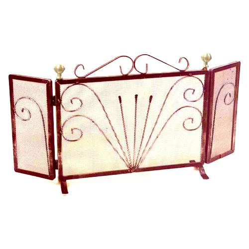Parascintille rete in ferro battuto per caminetto con pomoli di ottone.