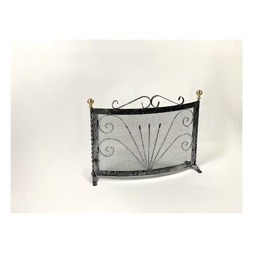 Parascintille semplice in ferro battuto a pannello singolo con 2 piedini e 2 pomelli di ottone, ideale per bloccare le scintille all'interno del camino e permette al calore di diffondersi nella stanza.
