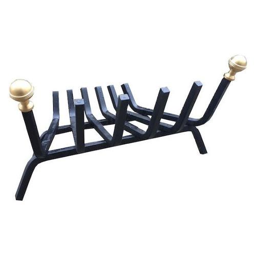 Brucialegna modello a coda di rondine realizzato in ferro battuto quadro con spessore da 14 mm, decorato con pomoli in ottone, verniciato di nero, ideale per il fuoco del vostro camino.