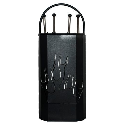 Il trespolo curvo con fiamma completo di accessori, comprende paletta, scopetta, attizzatoio e pinza tutti con impugnatura degli atrezzi in acciaio inox.
