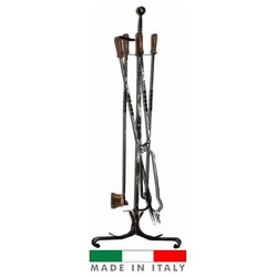 Il trespolo per forno in ferro e forgiato a mano composto da quattro utensili: paletta, scopetta, attizzatoio e pinza tutte con impugnature in legno. E' ideale per gestire la fiamma con estrema facilità, mantenendo una certa sicurezza dal fuoco, evitando così scottature ed inutili rischi. Questo trespolo semplice moderno è realizzata in Italia e fatto con tecniche artigianali, fatto per durare nel tempo !!