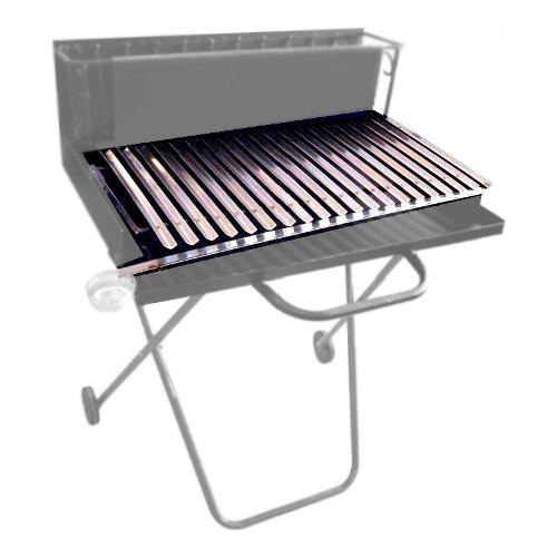 Graticola ricambio per barbecue legna con telaio in ferro e griglia in acciaio inox AISI 430 idoneo al contatto con alimenti con canaletta a V per il recupero grassi .Robusta, leggera e molto pratica, grazie ai suoi canaletti in acciaio inox per il recupero e scolo dei grassi.Facile e veloce da pulire, la griglia in acciaio inox è a norma per quanto riguarda l’igiene alimentare !Questa graticola in acciaio inox è realizzata in Italia e fatta per durare nel tempo !!