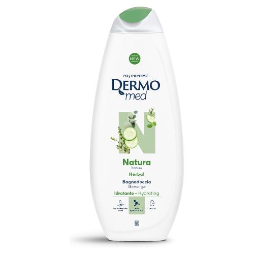 Il docciaschiuma Dermomed Natura è idratante e contiene acido ialuronico e glicerina dalle capacità emollienti e riparatrici del derma.