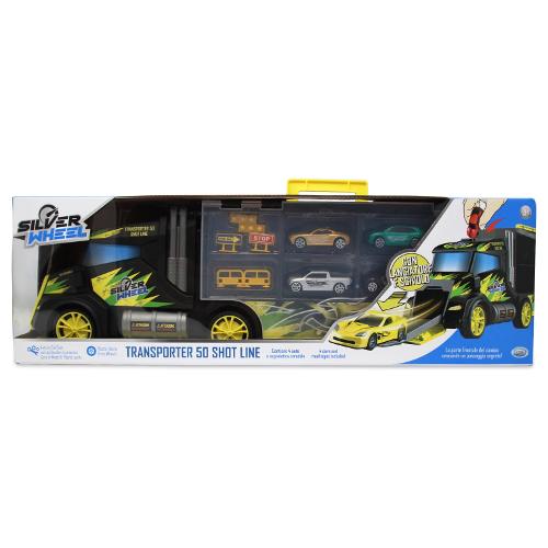 Camion bisarca con 4 auto Transporter Shot Line (50cm) SILVER WHEEL Assortito 41412