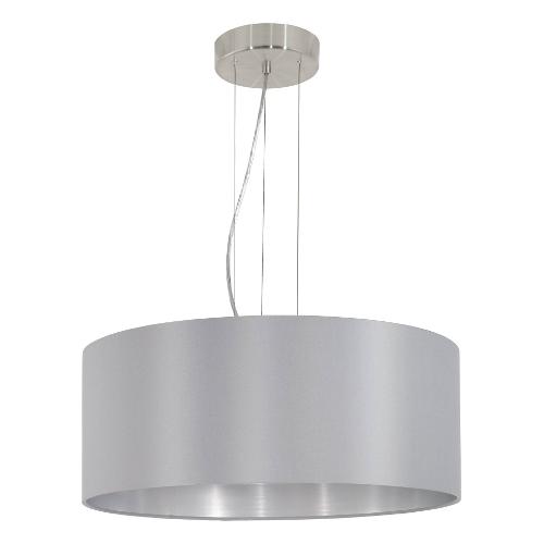 Sospensione MASERLO Nickel opaco, Grigio e Argento (53x110cm) 31606 3 luci - E27 - Max 180W