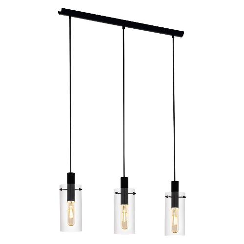 La lampada a sospensione MONTEFINO è composta da tre cilindri pendenti in vetro chiaro corredati di tre supporti in metallo nero. I paralumi di vetro consentono di vedere le lampadine interne. La lampada pende da una lunga struttura nera in metallo. Questa lampada a sospensione si armonizza con interni dallo stile moderno e offre un’illuminazione elegante per la sala da pranzo