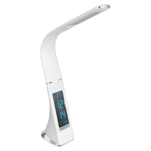 La lampada da scrivania a LED COGNOLI è realizzata in plastica bianca con dettagli color cromo. I LED integrati emanano una luce bianca neutra ideale per lavorare. Grazie al collo flessibile, si potrà illuminare in un batter d’occhio la postazione di lavoro in modo mirato. Questa lampada da scrivania dispone di un dimmer touch a 3 livelli. Oltre a disporre di funzioni utili quali l’indicazione dell’ora, della temperatura e della data, questa lampada conquista anche per la funzione sveglia con varie suonerie. Con il suo aspetto moderno e gli attraenti dettagli in plastica, che ricordano delle cuciture decorative in pelle, questa lampada è un pezzo immancabile, pratico e al contempo decorativo per la postazione di lavoro, che sia in ufficio o sulla scrivania di casa