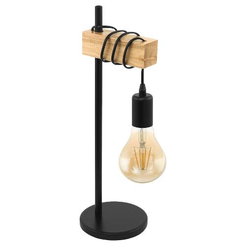Lampada tavolo TOWNSHEND Nero e Legno (15,5x17,5x50cm) 32918 1 luce - E27 - Max 10W