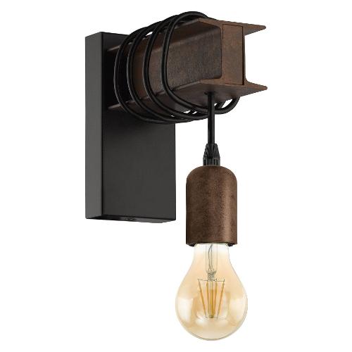Applique TOWNSHEND 4 Marrone anticato e Nero (1 luce - 10 W - E27) (8x19cm) 43152