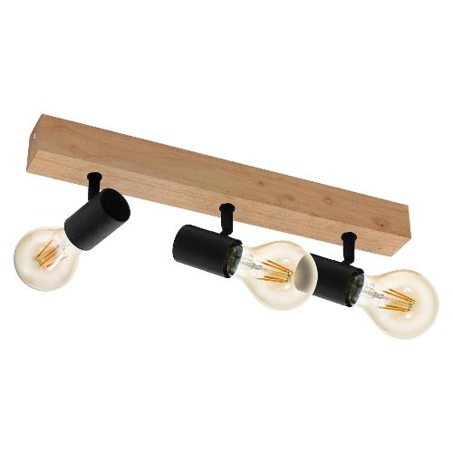 Set faretti spot TOWNSHEND 3 Nero e Legno (48x5cm) 98113 3 luci - E27 - Max 180W