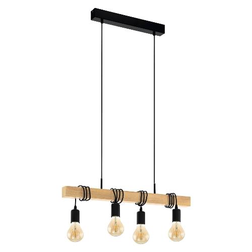 Sospensione TOWNSHEND Nero e Legno (70x10,5x110cm) 32916 4 luci - E27 - Max 240W
