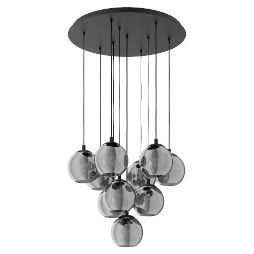 La lampada a sospensione ARISCANI è composta da dieci paralumi rotondi in vetro fumé nero-trasparenti che pendono ad altezze differenti da un baldacchino rotondo in metallo nero. Questo lampadario si armonizza perfettamente con un arredamento moderno e minimalista offrendo un’illuminazione particolare in qualsiasi ambiente, che sia nel soggiorno o nella sala da pranzo posizionato al di sopra di un tavolo da pranzo