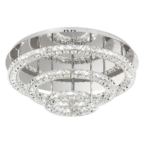 La plafoniera a LED TONERIA è costituita da un corpo metallico rotondo di colori cromati, a cui sono stati abbinati tre profilI LED rotondi di diverse dimensioni. I profili, posizionati a diverse altezze, erano racchiusi in molteplici cristalli di vetro trasparente. I LED integrati, posizionati all’interno dell'anello in cristallo, creano una luce piacevole, bianca e neutra, conferendo un aspetto scintillante ed elegante al locale, grazie ai preziosi cristalli di vetro trasparente. Con il suo diametro di 75 cm, questa plafoniera si inserisce con eleganza in diversi stili d’arredo, regalando un'illuminazione d'atmosfera a qualsiasi ambiente, come ad esempio salotto, sala da pranzo o camera da letto