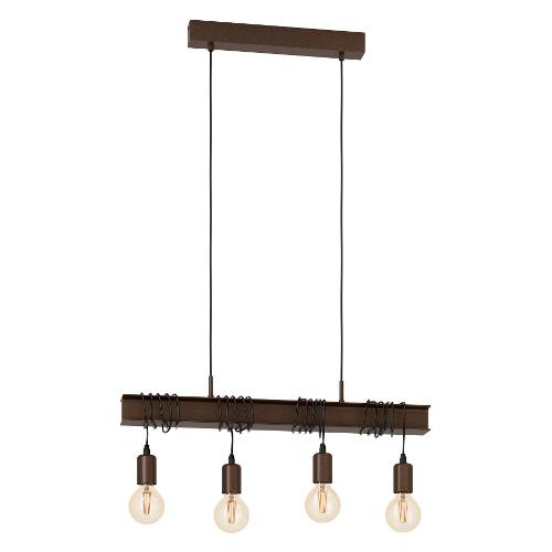 La lampada a sospensione TOWNSHEND 4 è composta da una trave in metallo in marrone antico con quattro supporti pendenti per le lampadine. La lunghezza dei supporti è variabile e può essere regolata a seconda dei propri gusti e delle necessità. Questo lampadario dallo stile di tendenza industrial si armonizza perfettamente con arredamenti moderni e offre un’illuminazione avvolgente nella sala da pranzo