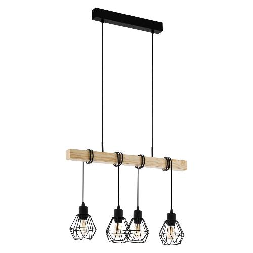 Eglo Sospensione TOWNSHEND 5 Nero e Legno (4 luci - 240W - E27) (70x20x110cm) 44075