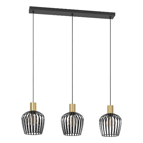 Eglo Sospensione EMPOLI Nero e Ottone spazzolato (3 luci - 120W - E27) (90x20x110cm) 901037
