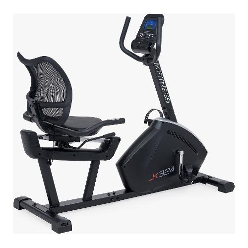 La JK 324 è una cyclette elettromagnetica recumbent di fascia media nel mondo home fitness equipaggiata con una massa volanica da 10 kg bilanciata e pedivella da 17 cm, che permettono una pedalata fluida e piacevole ad ogni andatura. lLa regolazione dello sforzo avviene mediante un servo motore comandato da due tasti sulla console con ben 16 livelli di resistenza. La cyclette recumbent JK 324 grazie alle ampie regolazione, permette di ospitare a bordo persone molto alte. I dati della regolazione in profondità del sedile permettono una estensione della gamba da 72 cm a 96 cm e una distanza sedile manubrio da 57 cm a 70 cm, questi dati confermano l’ottima ergonomia della cyclette. Il sedile ergonomico è molto comodo, con una imbottitura a compressione graduata che aiuta e mantenere la corretta posizione per lunghe pedalate, lo schienale in rete assicura la massima traspirazione garantendo sempre piacevoli allenamenti cardio in pieno comfort. Il pedale antiscivolo autolivellante con cinghietto ferma piede aiuta a mantenere la corretta posizione della scarpa in tutte le fasi dell’esercizio. La nuova cyclette JK 324 con ricevitore incorporato può collegarsi alle più importanti APP del mondo fitness (Zwift – Kinomap) per rendere più divertente l’allenamento cardio, pedalando in giro per il mondo! La console, con un pratico supporto porta cellulare/tablet, è dotata di uno schermo multi-display retroilluminato a colori con 5 finestre più una matrice grafica per visualizzare il profilo dei programmi; i dati forniti dal display sono: tempo, distanza, velocità, RPM, calorie, Watt, frequenza cardiaca, livello resistenza, n° programma, diagramma programma. La consolle della nuova cyclette JK 324 è dotata di programmi per rendere gli allenamenti più divertenti; 1 programma manuale gestito manualmente dall’utilizzatore, 10 programmi preimpostati con differenti profili della resistenza per ogni segmento, 4 programmi HRC (55% 75% 95% e tag user BPM), 5 programmi User (settabili da utente step by step), 1 programma a Watt costanti, 1 recovery test (sul recupero post sforzo). La cyclette JK 324 è dotata di due sensori grip pulse sul manubrio posteriore e del sensore integrato per la ricezione dalla fascia cardio per rilevare la frequenza cardiaca dell’utilizzatore durante le sessioni di allenamento più intense. La fascia cardio toracica è optional. Lo stabile telaio della JK 324 poggia su ampi stabilizzatori con 2 tamponi autolivellanti posteriori che permettono di sopportare un peso max utilizzatore di 135 kg; nella parte anteriore sono posizionate 2 rotelle di trasporto, che facilitano l’utilizzatore negli spostamenti della cyclette.