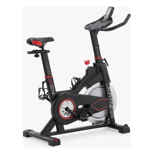 La nuova indoor bike JK 514 nasce per confermare l’offerta media JK home fitness migliorando le prestazioni rispetto alla gamma precedente, con un design decisamente più contemporaneo e accattivante grazie al nuovo look total black con dettagli cromati. La nuova JK 514 è una spin bike magnetica di fascia media nel mondo home fitness con la trasmissione a scatto fisso e con cinghia silenziata, equipaggiata con un sistema inerziale con massa volanica da 18 kg (volano bilanciato) e una pedivella da 16,5 cm, che generano fluidità della pedalata a tutti i livelli della resistenza. La regolazione dello sforzo avviene tramite un comando con selettore manuale con resistenza “millimetrica” che funge anche da freno di emergenza in caso di arresti repentini della pedalata da parte dell’utilizzatore. Per un maggiore comfort l’indoor bike JK 514 ha la regolazione in altezza della sella su 8 posizioni (misura della gamba da 73,5 cm a 89 cm) e in profondità 6 cm, il manubrio si regola in altezza su 8 posizioni; queste regolazioni servono per ricercare la giusta postura in sella ad ogni utilizzatore. La sella racing design, anatomica e con foro centrale, aiuta e migliora la sensazione a bordo a tutti gli utenti, garantendo confortevoli e lunghe pedalate senza fastidi. Il pedale racing antiscivolo in ferro con cinghietto ferma piede, aiuta a mantenere il corretto appoggio della scarpa in tutte le fasi della pedalata, anche in quelle più intense. Il ciclo-computer con display LCD multi-informazione adotta anche un supporto porta cellulare / tablet e permette di monitorare in tempo reale tutti i parametri dell’allenamento, quali: tempo, distanza, velocità, RPM, calorie e frequenza cardiaca. La gym bike JK 514 è dotata di un sensore nella console per rilevare la frequenza cardiaca dell’utilizzatore tramite la fascia cardio durante le sessioni di un allenamento cardio più intenso; la fascia cardio è optional da acquistare separatamente. Il robusto telaio in acciaio della JK 514 presenta ampi stabilizzatori con quattro piedini antiscivolo (posteriori autolivellanti) e garantisce un peso max utilizzatore di 130 kg, mentre nella parte anteriore ci sono due ruote di trasporto, che aiutano l’utilizzatore a spostare la spin bike JK 514 da un locale all’altro; adatta a chi vuole una buona prestazione ma necessita di un prodotto non ingombrante.