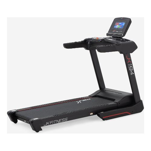 Il nuovo tapis roulant JK 194 entra di diritto ai vertici della gamma home fitness migliorando le caratteristiche tecniche, rispetto alla gamma precedente, il tutto inserito in un contesto più sportivo e interattivo. Il JK 194 è un tapis roulant elettrico di fascia alta nel mondo home fitness equipaggiato con un motore a corrente alternata AC (motore professionale) da 4.0 HP con un picco massimo di 7.0 HP che permette di raggiungere una velocità di 22 km/h, con regolazione ad incrementi one-step di 0,1 km/h. Il JK 194 è dotato di una inclinazione elettronica su 15 livelli, che permette di raggiungere una pendenza max pari al 9,5 %. Per offrire un comfort totale all’utilizzatore, il JK194 è equipaggiato con una serie di pulsanti rapidi per velocità ed inclinazione utili ad eseguire repentine modifiche della prestazione senza distrazioni. L’ampia superficie di corsa di 54 x 160 cm, con nastro spesso 2,5 mm high performance, permette prestazioni in piena sicurezza grazie anche al sistema di ammortizzazione comfort flex system, che riesce a parzializzare i microtraumi dovuti all’impatto del piede durante la camminata/corsa. Il quadro di comando del nuovo JK 194 è composto da uno schermo LCD HD da 10”, per mantenere sotto controllo tutti i parametri dell’allenamento cardio quali: tempo, distanza, velocità, inclinazione, calorie bruciate, n° passi, frequenza cardiaca; inoltre, l’ampio touch-screen enfatizza con video di paesaggi reali precaricati, l’allenamento a casa, dando la sensazione di essere “all’aperto”! Il tapis roulant JK 194 è dotato di due sensori integrati: ricevitore per collegare i propri devices elettronici (per collegamenti a APP, social e musica); e ricevitore 5.3 KH per la rilevazione della frequenza cardiaca mediante la fascia cardio toracica JK offerta di serie. Il tapis roulant JK 194 è una macchina cardio che si adatta al livello di fitness di ogni utilizzatore, essendo equipaggiato di una serie di programmi per rendere ogni allenamento, il “tuo” allenamento! Sono in dotazione: 1 programma manuale dove tutte le funzioni sono interamente gestite dall’utilizzatore in ogni momento; 4 programmi a target con obiettivi pre-determinati per raggiungere una durata in minuti, una distanza in km, un numero passi e un consumo di energia calorie; 1 target n° giri di pista 400 m; 36 programmi pre-impostati con la variazione combinata fra velocità ed inclinazione; 1 HRC con target determinato dall’utente e possibilità di fissare la velocità massima; 1 User programmi personalizzabili dall’utilizzatore stesso, ovvero bisogna impostare ogni singolo step del programma determinando velocità ed inclinazione; 3 virtual wolrd tour. La console è dotata di due casse audio HI-FI, due vani porta borraccia/oggetti, un ingresso audio USB, ingresso audio jack, una uscita USB per ricaricare i propri devices durante l’allenamento. È possibile connettere alcune App motivanti e divertenti per rendere le sessioni di allenamento interattive e stimolanti, quali: Zwift, Kinomap (abbonamenti non inclusi).