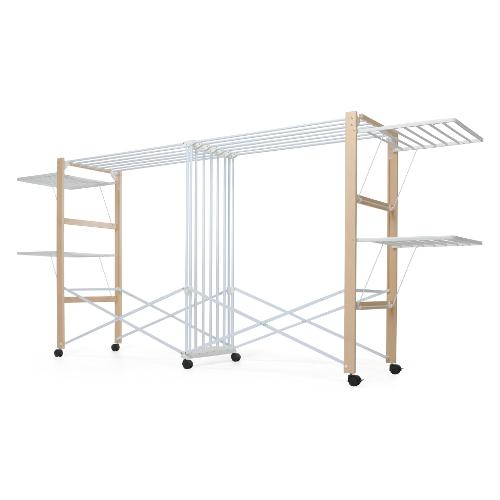 Lo stendibiancheria pieghevole in legno allungo di foppapedretti mette a disposizione ben 30 metri di filo utile per stendere. È ideale per stendere il bucato ingombrante come lenzuola e tovaglie.