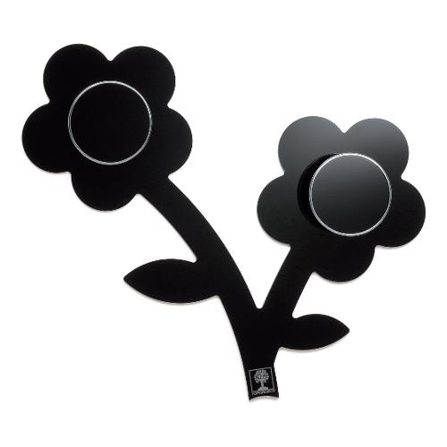 L'appendiabiti da parete Appendifiore di Foppapedretti è composto da un modulo con due pomoli a forma di fiore per appendere giacche e cappotti, componibile a piacere affiancando più moduli