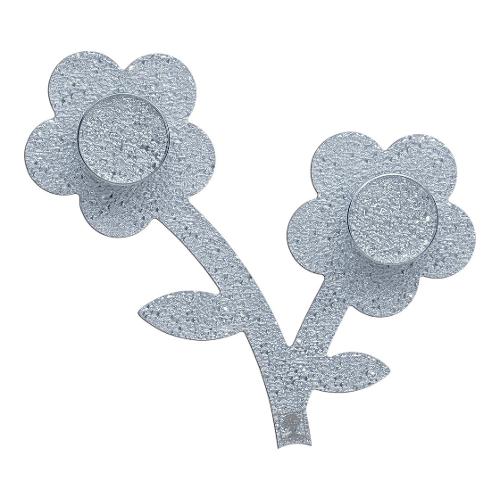 L'appendiabiti da parete Appendifiore di Foppapedretti è composto da un modulo con due pomoli a forma di fiore per appendere giacche e cappotti, componibile a piacere affiancando più moduli