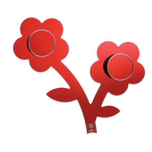L'appendiabiti da parete Appendifiore di Foppapedretti è composto da un modulo con due pomoli a forma di fiore per appendere giacche e cappotti, componibile a piacere affiancando più moduli