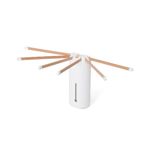 Lo stendipanni Plus di Foppapedretti è uno stendino da calorifero dotato di serbatoio estraibile per umidificare l'ambiente. Realizzato in materiale Abs bianco, con 6 raggi estraibili indipendenti in legno massiccio di faggio verniciato naturale. In dotazione i ganci per appenderlo al calorifero.