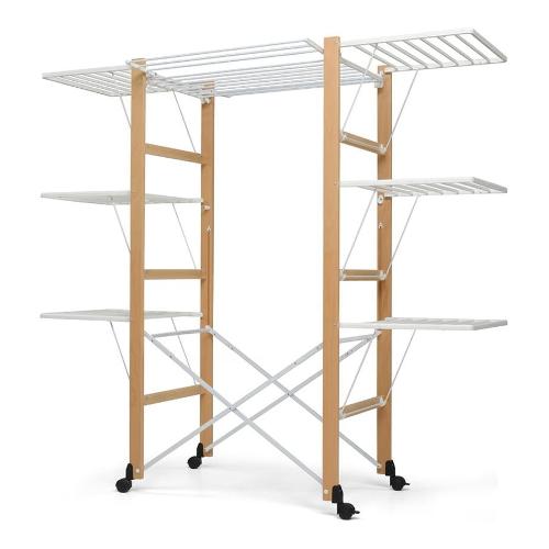Lo stendibiancheria pieghevole in legno ursus di foppapedretti è modulabile in base alla quantità e al tipo di bucato da stendere. Infatti, il piano centrale si può posizionare a due altezze diverse: al centro per panni meno ingombranti oppure in alto per stendere lenzuola e tende. Inoltre, le ali laterali indipendenti sono inclinabili e apribili anche solo parzialmente.