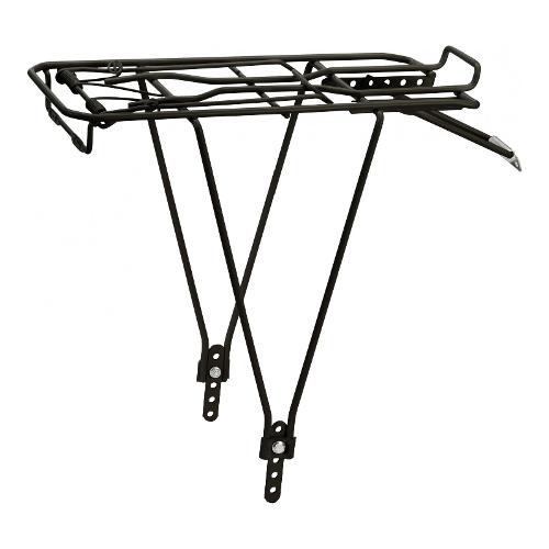 Portapacchi posteriore regolabile in acciaio verniciato con molla per cicli con ruota da 24 a 28". Portata max 25 kg