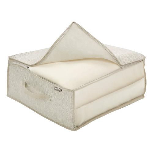 Custodia per coperta dotata di pratica finestra laterale e comoda apertura superiore. Il tessuto non tessuto è un materiale altamente traspirante e resistente agli strappi. Ideale per coperta a una o a due piazze e per trapunta/piumone ad una piazza.