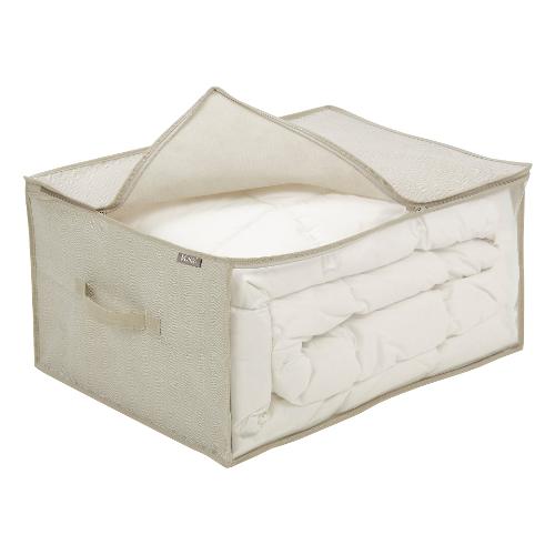 Custodia per trapunta dotata di pratica finestra laterale e comoda apertura superiore. Il tessuto non tessuto è un materiale altamente traspirante e resistente agli strappi. Ideale per trapunta e piumino a due piazze.