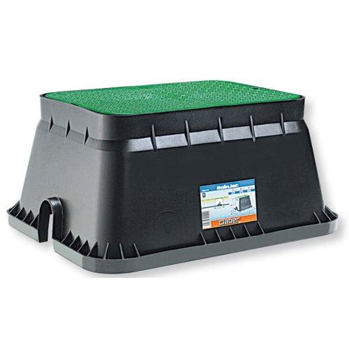 Di forma rettangolare con coperchio protetto da dispositivo di chiusura antivandalo. Resiste alle alte e basse temperature e ai raggi UVA. Contiene 5 elettrovalvole.