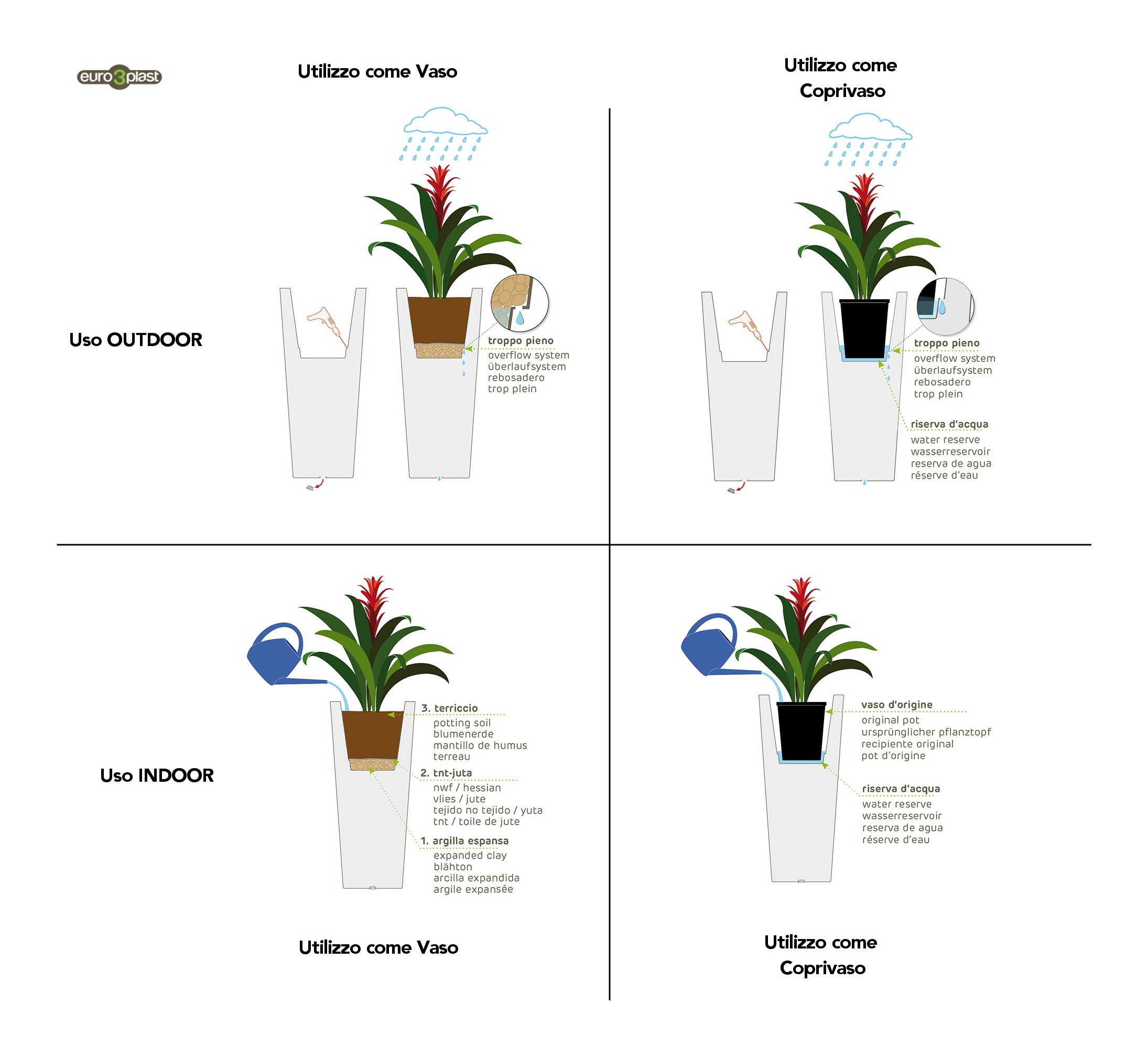 Euro 3 Plast Vaso quadro per piante plastica (20x20x20cm) STYLE KUBE Tortora 2634G9