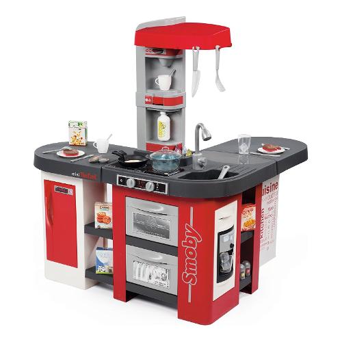 Design contemporaneo, grande piano lavoro, equipaggiata con 38 accessori, funzione dell'acqua che bolle, metti dell'acqua nella pentola, appoggiala sul fornello e vedrai che l'acqua bollirà e puoi buttare la pasta. La cucina è dotata di macchina da caffè, dispenser per bevande, lavastoviglie, frigo, forno, proprio come una vera e moderna cucina, anche i suoni sono realistici