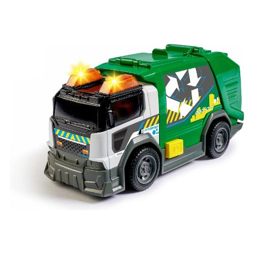 Camion della raccolta differenziata – veicolo dei rifiuti con effetti sonori e spia luminosa, lungo 15 cm, ruote piroettanti, portellone con meccanismo di apertura, raccolta dei rifiuti.