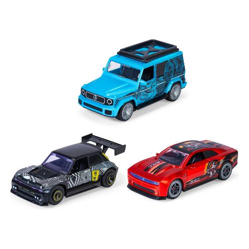 Auto modello funzionamento pull back con sterzo, porte apribili, stampa UV e pneumatici in gomma.