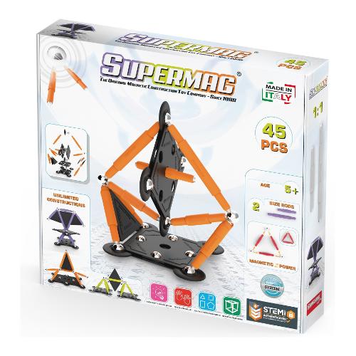 Ti presentiamo il set technicolor da 45 pezzi di supermag projects: lo starter kit perfetto per un divertimento senza fine nella costruzione magnetica! Questo set presenta un vivace assortimento di aste in colori primari, offrendo un'esperienza di costruzione visivamente stimolante e coinvolgente per i bambini.