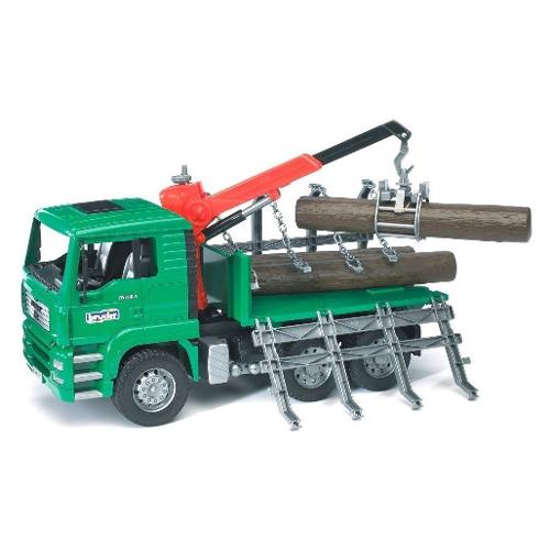 Riproduzione fedele in scala 1:16. Camion con gru per carico scarico tronchi di legna. Sterzo sull' asse e ruote oscillanti e pneumatici morbidi per uso interno