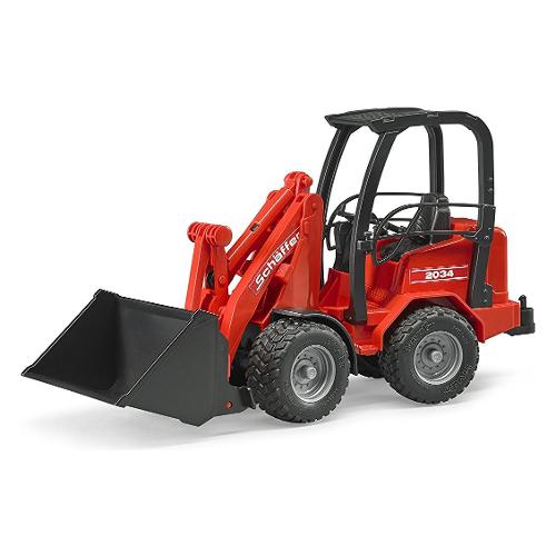 Da oltre 50 anni, Schäffer sviluppa caricatrici gommate a uso agricolo, ad esempio per l'architettura del giardino e del paesaggio. La classe compatta 2000 appartiene alla serie Schäffer di maggior successo. Per caricatrici come questa, la premessa è garantire le massime prestazioni in uno spazio ristretto. Questo veicolo prezioso e sorprendentemente versatile per ogni utilizzo agricolo che si rispetti è ora disponibile nella collezione Bruder in scala 1:16. Per garantire la massima manovrabilità, il veicolo presenta, esattamente come il fratello maggiore, sterzo articolato, braccio di carico e pala funzionali. Per la sicurezza del personaggio bworld, che si adatta senza problemi al sedile del conducente, è disponibile una massiccia rollbar. Per un maggiore divertimento, è possibile espandere la caricatrice con il set di accessori n. 02318 (non fornito).