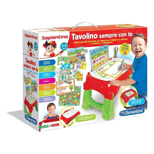Questo tavolino è un vero set di giochi educativi con tanti puzzles, giochi di associazione e schede per imparare a scrivere e disegnare nel mondo di Sapientino. I più piccoli potranno esercitarsi a leggere, scrivere, contare, e a riconoscere forme, colori e animali.