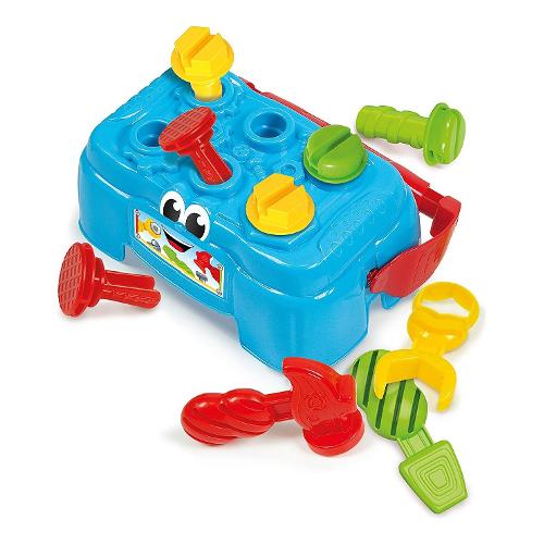 Un ricco banchetto per giocare con 3 attrezzi, un martello, un cacciavite e una chiave inglese e ben 6 accessori, chiodi, bulloni e viti, per un divertimento ricco e interattivo. Diventa anche una pratica cassetta degli attrezzi che il bambino può portare sempre con sé. Stimola la coordinazione occhio-mano e la manualità.