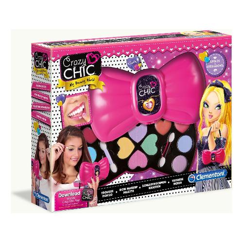 Una trousse super romantica a forma di fiocco per un trucco impeccabile in qualsiasi occasione! Contiene ombretti e lucidalabbra scintillanti per non passare mai inosservate e un comodo specchietto per essere sempre in ordine. Un set di cosmetici rimovibili con acqua, per giocare in tutta sicurezza e dar libero sfogo alla propria creatività. Nastro e perline sfaccettate per trasformare la trousse in una bellissima borsetta.