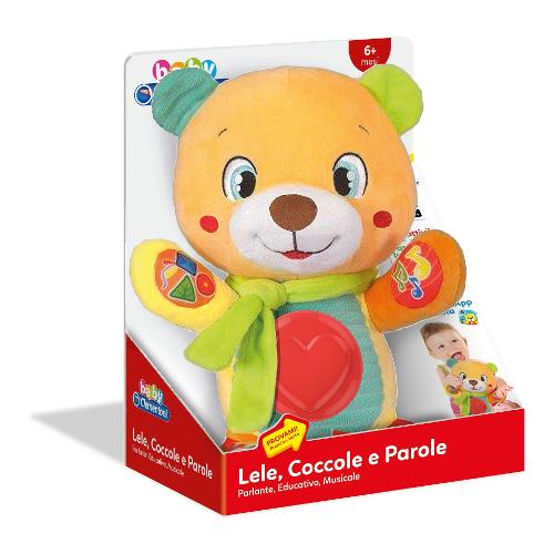 È un morbidissimo peluche parlante che unisce educatività e divertimento. Toccando i 5 tasti interattivi parla e guida alla scoperta delle prime lettere, dei primi numeri, delle forme e dei colori. Il cuore è un tasto interattivo e si illumina mentre lele parla e canta tante allegre filastrocche e canzoncine.